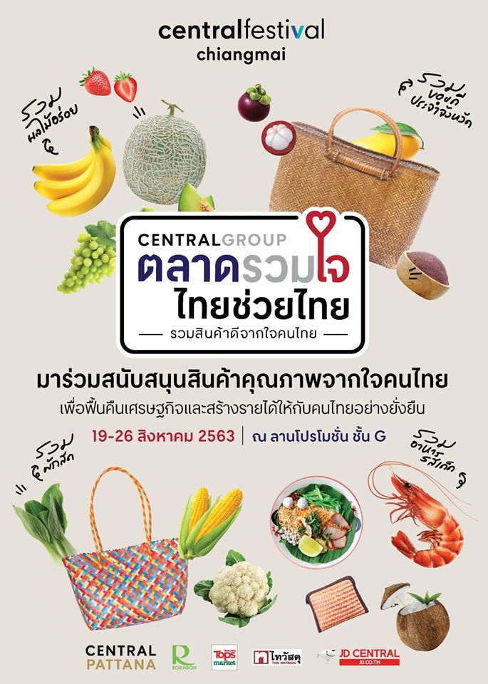 ตลาดรวมใจ ไทยช่วยไทย🇹🇭 👨🏾🌾 วันที่ 19-26 สิงหาคม 2563 ณ ลานโปรโมชั่น ชั้น G ศูนย์การค้าเซ็นทรัล เฟสติวัล เชียงใหม่