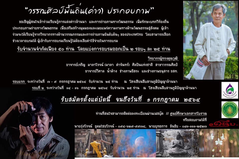 วรรณศิลป์พื้นถิ่น(ค่าว)ประกอบภาพ รอบแรกวันที่ 7-9 กรกฏาคม 2564 รอบสอง วันที่ 14-15 กรกฏาคม 2564 เวลา 9.00 น.เป็นต้นไป ณ โฮงเฮียนสืบสานภูมิปัญญาล้านนา