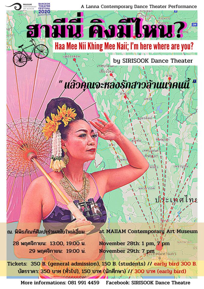 ฮามีนี่ คิงมีไหน? Haa Mee Nii Khing Mee Naii; I’m here where are you? ละครโดย SIRISOOK Dance Theatre 28-29 พฤศจิกายน 2563 ณ. พิพิธภัณฑ์ศิลปะร่วมสมัยใหม่เอี่ยม
