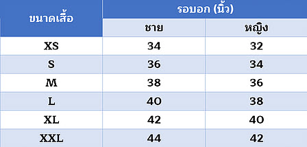 ขนาดเสื้อที่ระลึก
