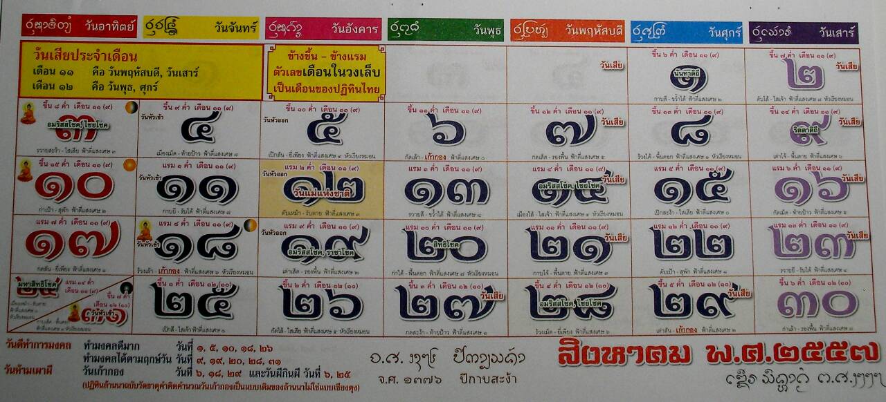 ดู>>> ปฏิทินล้านนา ปีอื่นๆ  การดูฤกษ์ยามแบบล้านนา คำแปล วิธีอ่าน >>> ฤกษ์ยาม ล้านนา วันดีวันเสีย