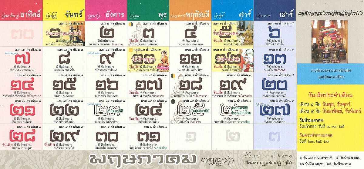 ปฏิทินล้านนา เดือนสิงหาคม 2560