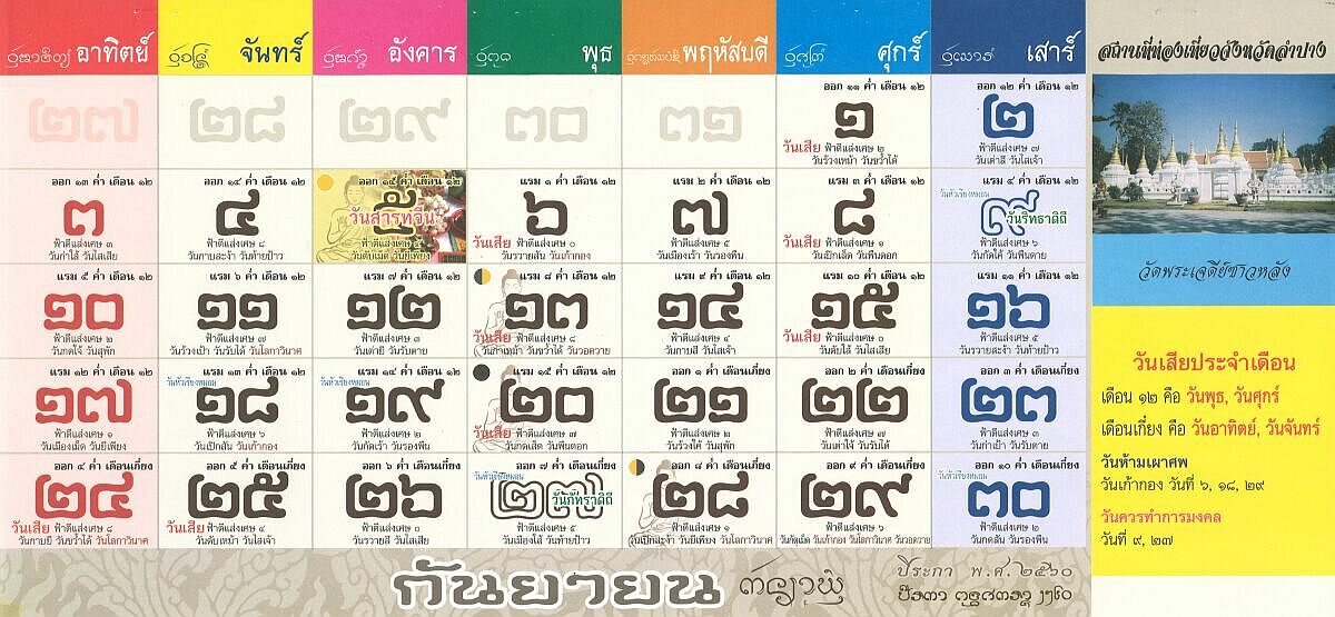 ปฏิทินล้านนา เดือนกันยายน 2560